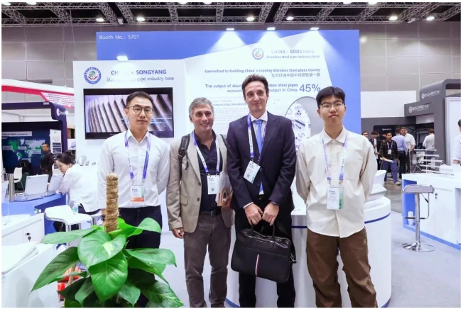松阳县以“CHINA・SONGYANG STAINLESS STEEL PIPE INDUSTRIAL BASE”(中国・松阳不锈钢管产业基地)的集体形象首次亮相,成为展会一大焦点,向全球全方位展示中国高端不锈钢管道产业的深厚底蕴与强大集群优势。