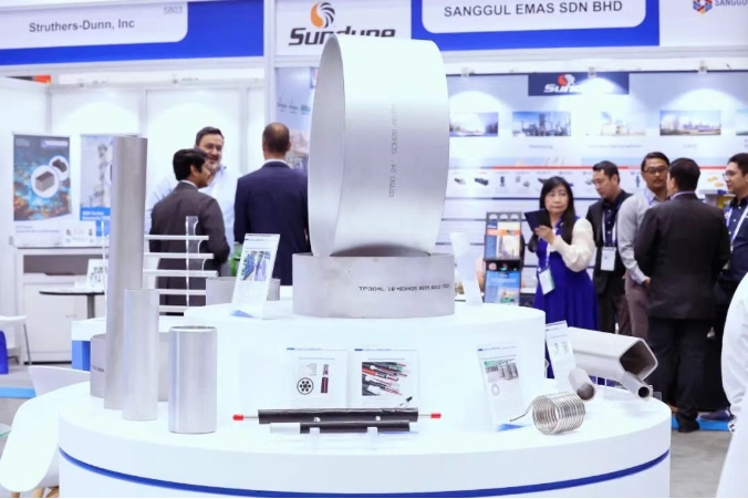 展会现场,松阳县带来的100余件极具代表性的不锈钢管材管件整齐陈列,吸引众多国内外客商驻足。这些展品涵盖石油天然气输送、化工炼化、海洋工程等多领域应用,从大口径厚壁管道到精密薄壁管件,每一件都凝聚松阳不锈钢管产业的精湛工艺与创新智慧。其卓越的耐腐蚀性、高强度及高精度,完全满足石油天然气行业严苛工况需求,彰显松阳在高端不锈钢管道制造领域的领先地位。